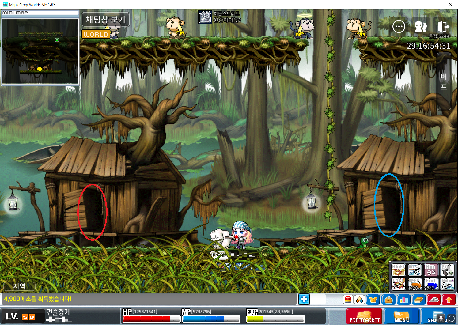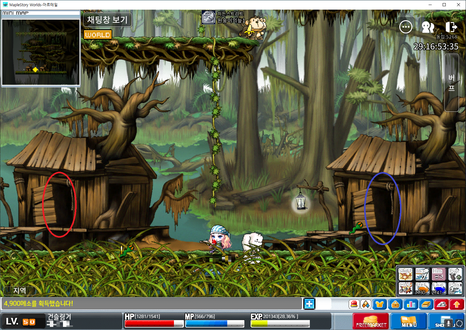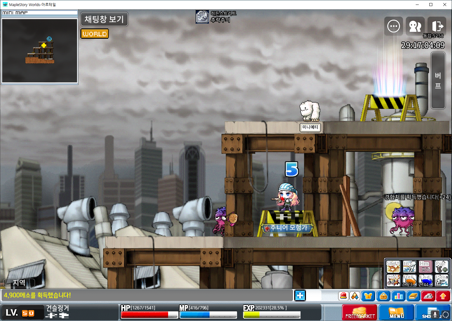 | 북쪽공사장 꼭대기. (LV.12 옥토퍼스, LV.20 파란버섯) | |