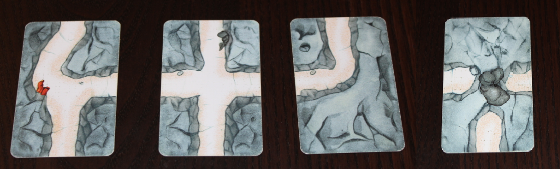 - 굴 카드를 놓을 때, 상하좌우 카드에 맞게 통로를 연결. (세로로만 놓기. 길이 이어지게 놓기)
